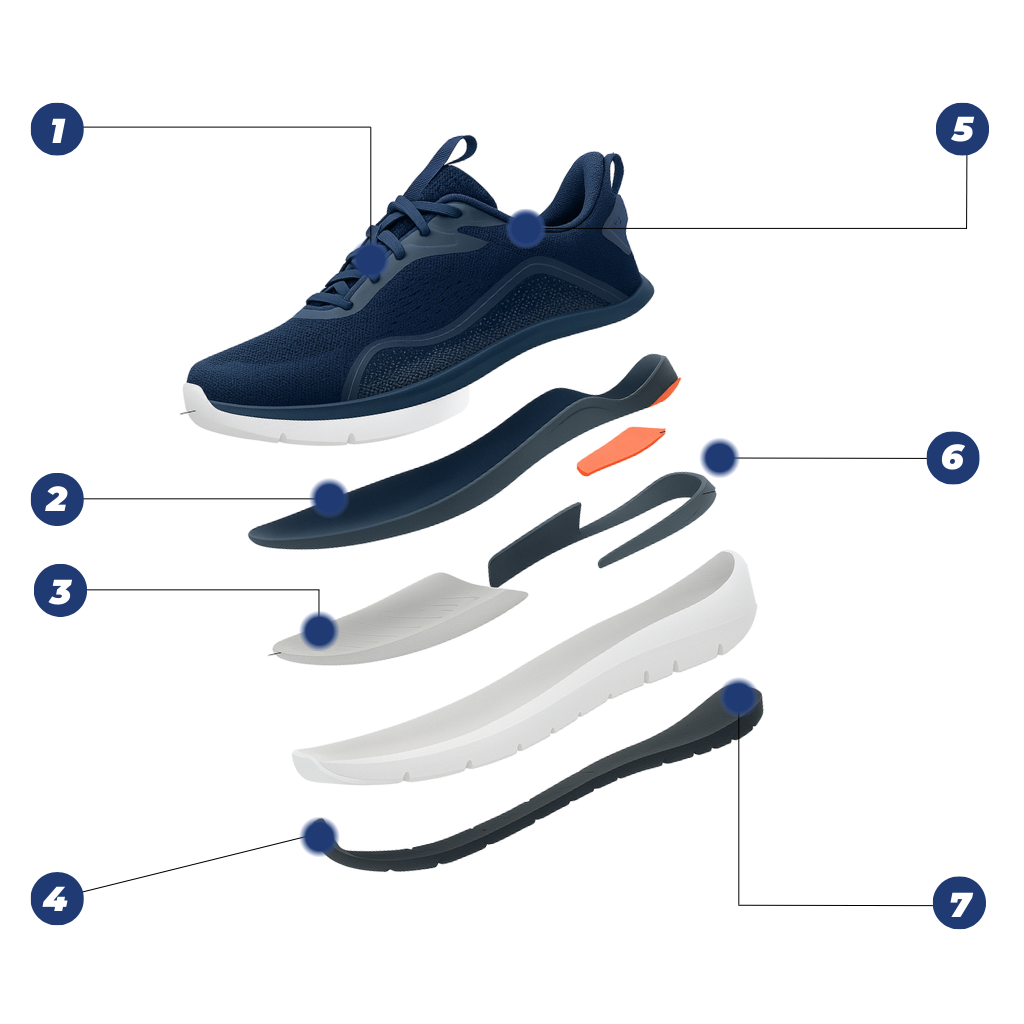 Amortiguación Ortho: sostiene los arcos y los talones mientras absorbe los impactos.