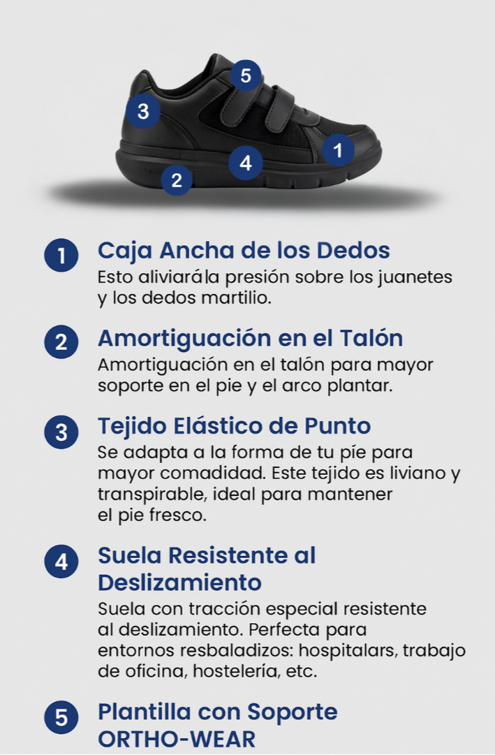 Vuelve a caminar sin dolor con zapatos diseñados para reducir las molestias y dar soporte a tus pies, ya sea que tengas juanetes, pies planos o simplemente necesites más comodidad día a día.
